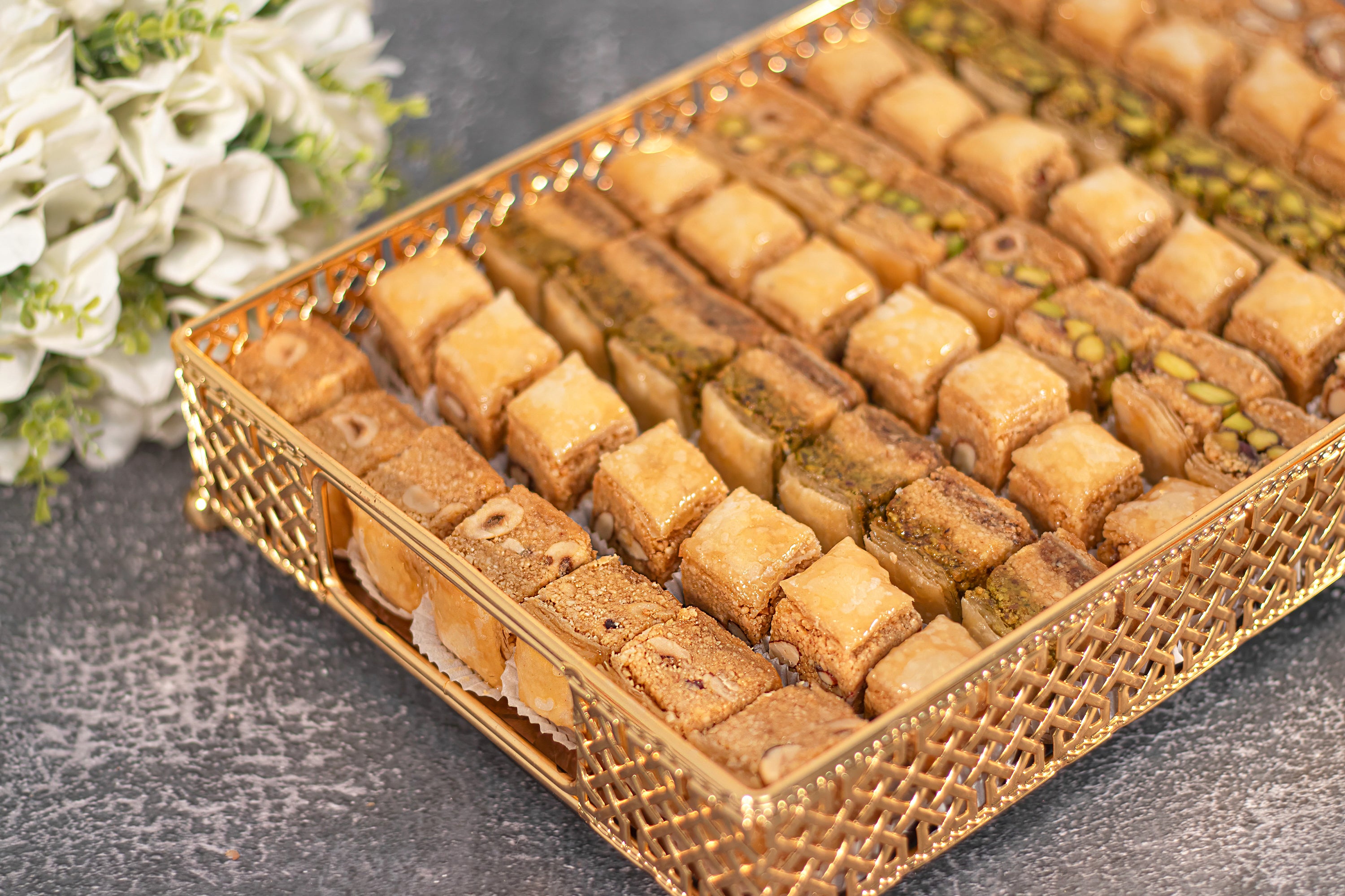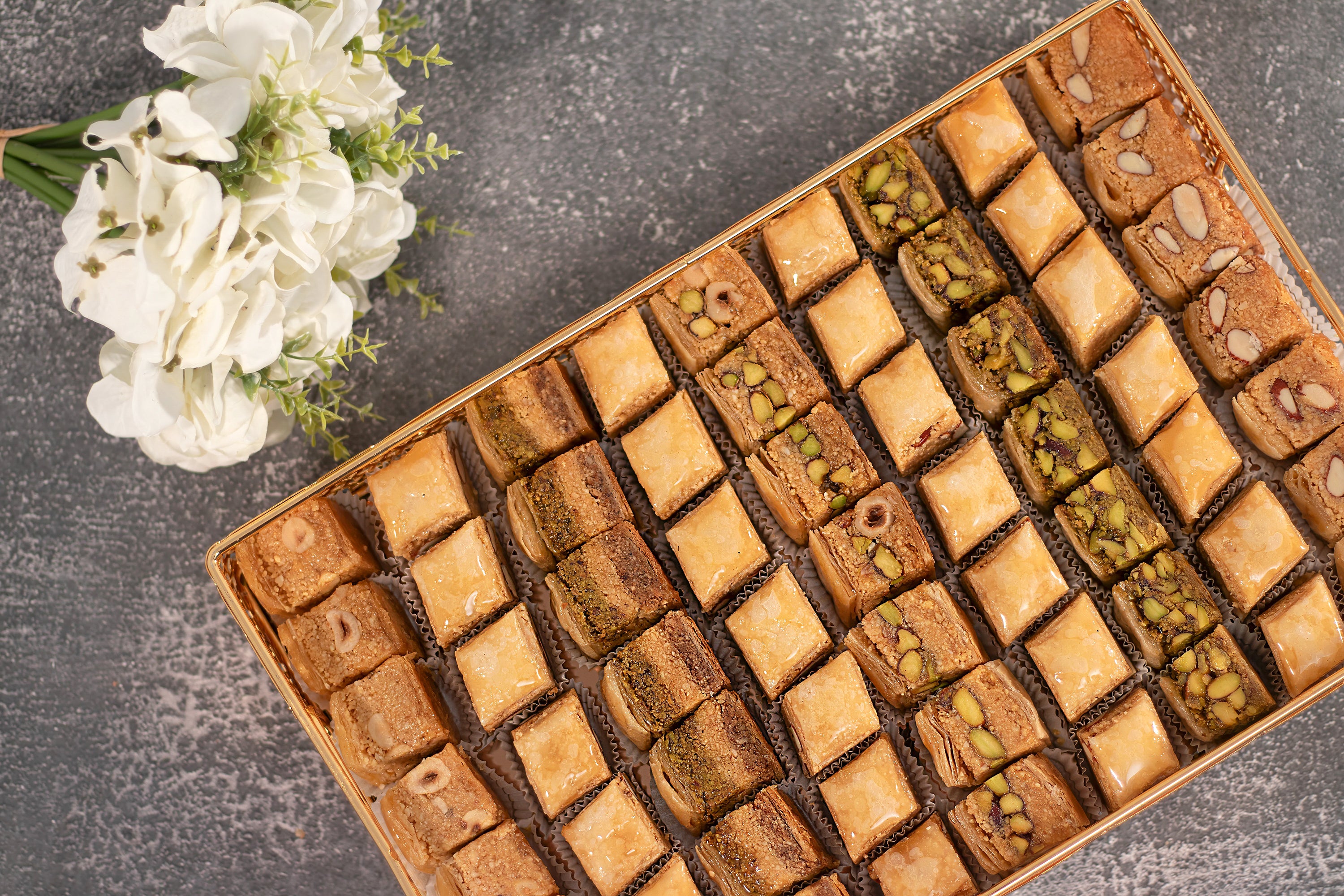 Confectionnée avec des fruits secs de qualité supérieure, tels que des amandes, des pistaches, et des noisettes, et enrichie avec des ingrédients raffinés, chaque bouchée de notre Baklawa est un délice authentique alliant tradition et luxe.