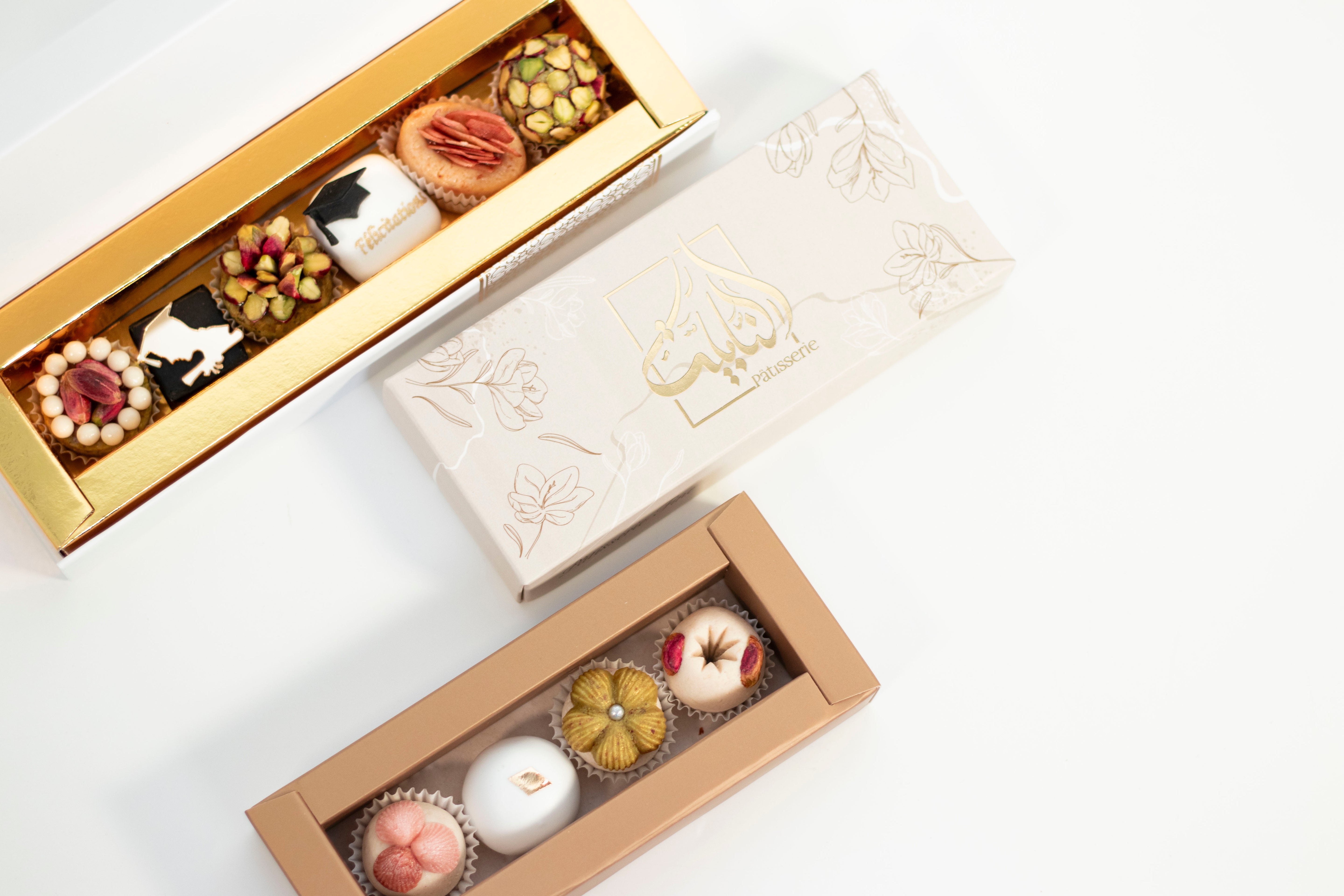 Les Coffrets Diplôme sont spécialement conçus pour célébrer l'accomplissement académique et offrir une touche d'élégance lors des soutenances de fin d’études. Cette collection propose des assortiments raffinés de pâtisseries tunisiennes, parfaits pour ravir les jurys et célébrer cette étape importante avec les invités. Que ce soit pour un geste de gratitude envers les jurys ou un grand coffret festif pour partager avec les proches, chaque coffret est un hommage à l'excellence et au savoir-faire artisanal tunisien.